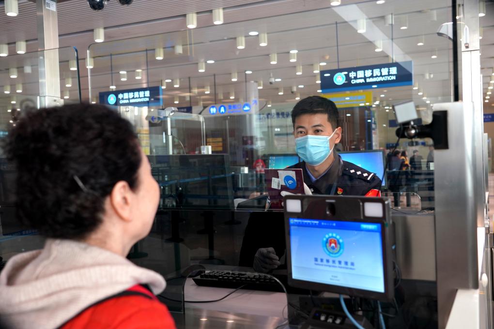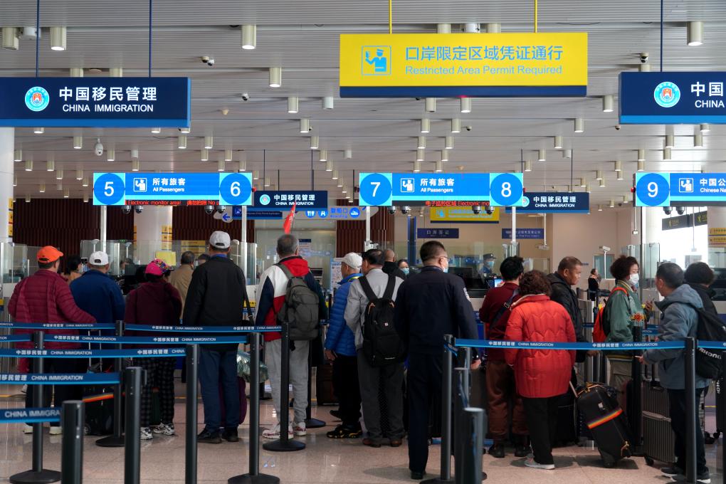 天津东疆边检站为旅客提供便利通关服务。新华社发