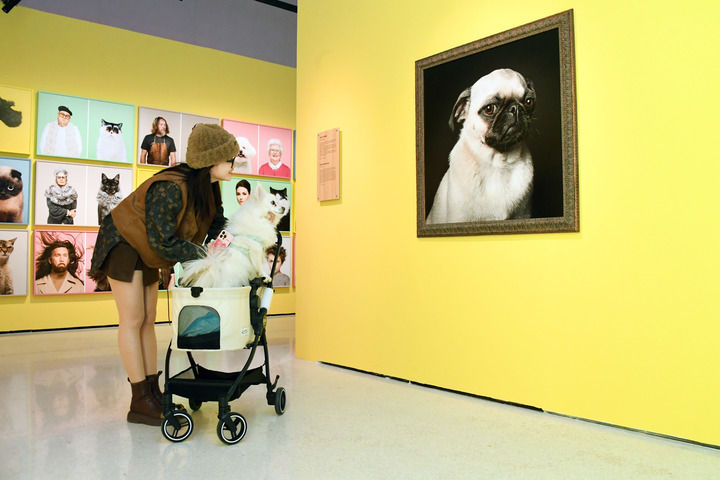 3月30日,观众在北京时代美术馆参观《宠物总动员》摄影展。新华社记者 任超 摄