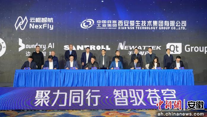 会上,宿州市高新技术产业开发区管委会与安徽云枢智航科技有限公司(以下简称“云枢智航”)签署低空生态建设合作备忘录,云枢智航与中国兵器工业集团西安爱生技术集团(以下简称“中国兵器爱生集团”)以及产业链合作伙伴签约。