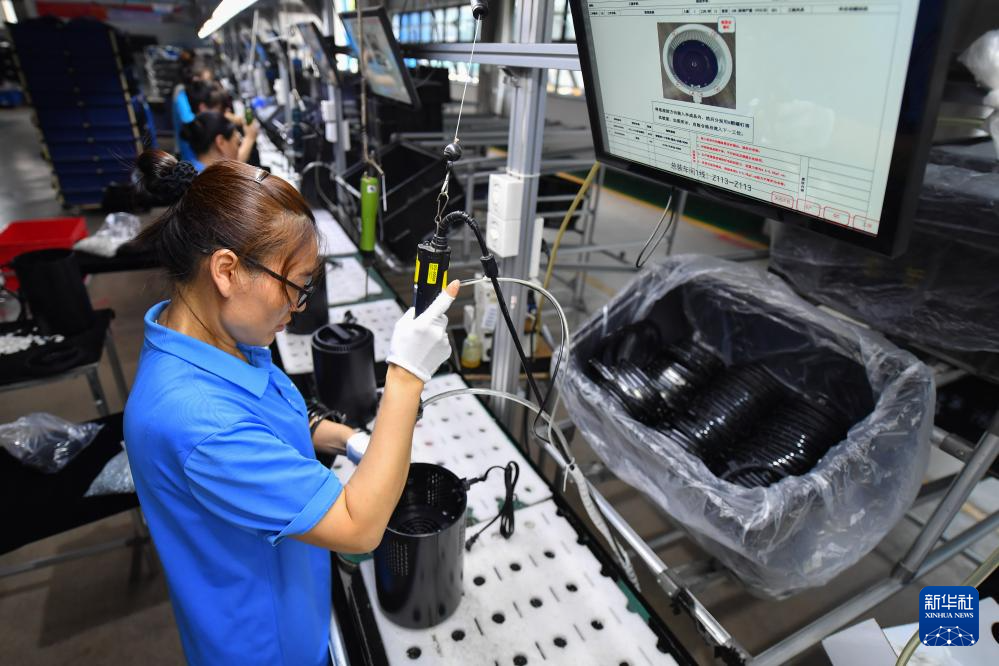9月27日,在宁乡市金洲新城的湖南斗禾智能电器有限公司,工作人员在测试除湿器。
