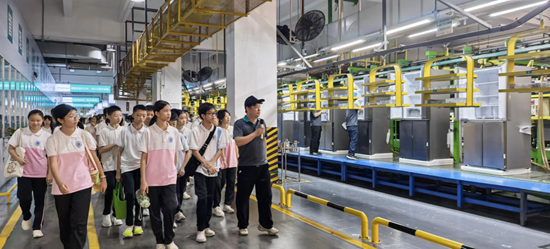 海信家电为学生们提供企业参观研学的场地与支持,让学生们在真实的研发、制造与质检场景中完成“懂科技”的素养打卡、“爱科技”的情感升温、“创科技”的期许播种,帮助引发学生对生涯规划的思考。