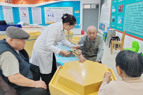 乌苏市新市区街道文林路社区联合卫生服务站,组织医疗志愿者开展入户义诊活动,为高龄老人测血压、听心肺,询问日常用药饮食作息情况,针对老年常见病给予健康指导,并留下联系方式畅通咨询渠道,将健康服务送到老年群体“家门口”。