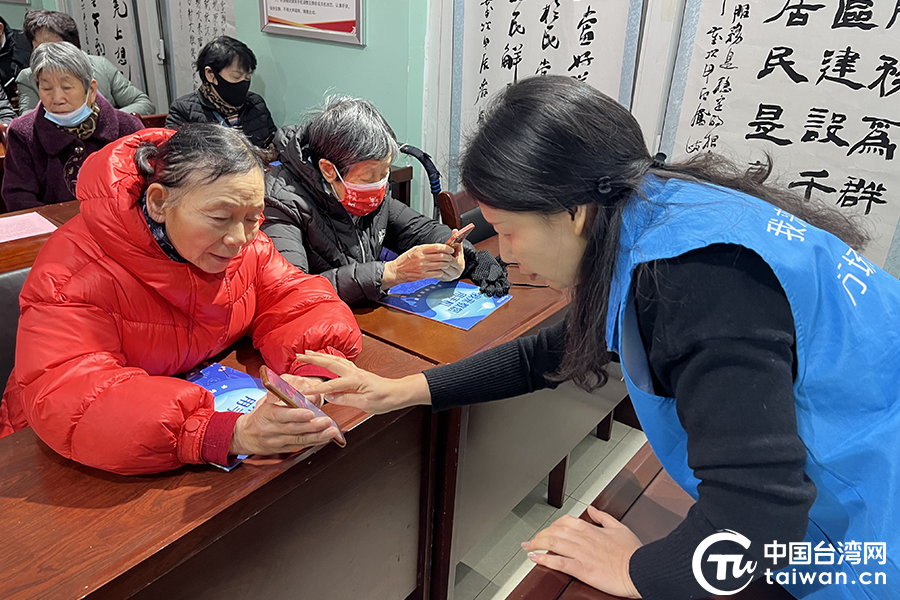 社工老师现场指导老年人使用智能手机(中国台湾网发)