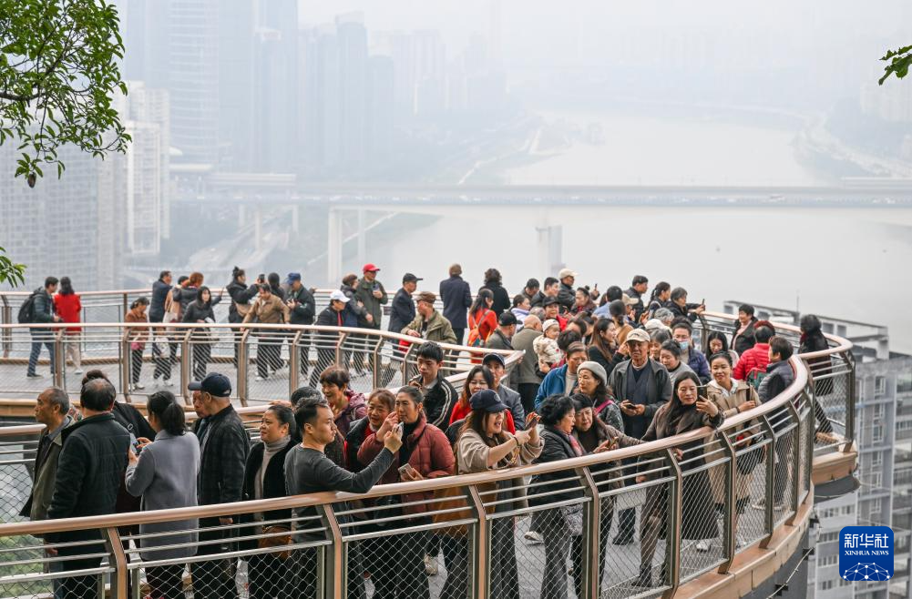 11月24日,人们在重庆半山崖线鹅岭栈桥观光。新华社记者 陈诚 摄
