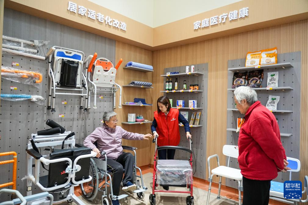 10月23日,老人们在淄博市张店区马尚街道金石社区日间护理中心体验适老辅助器具。新华社记者 朱峥 摄