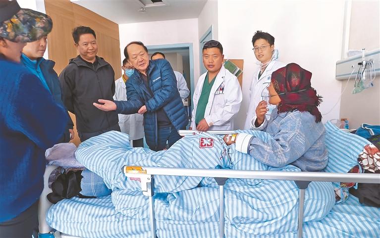 图为南京市第一医院关节外科专家团队了解患者术后康复情况。格桑伦珠 摄