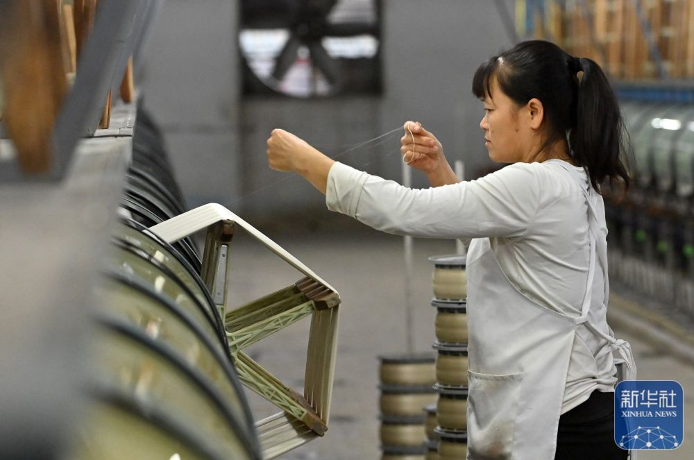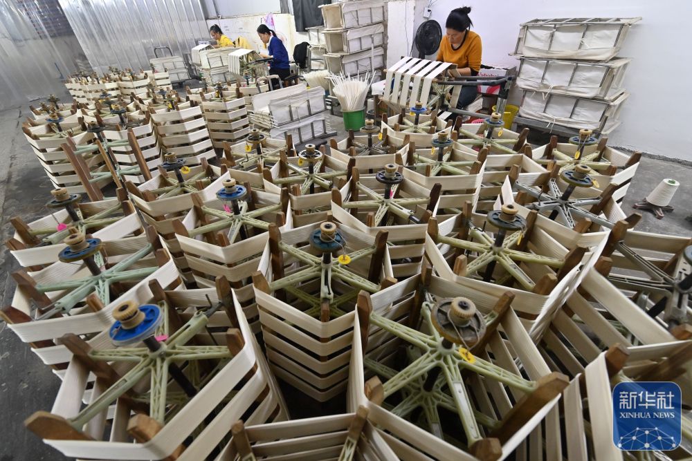 ↑11月4日,工人在广西忻城县一家丝绸企业进行生产作业。