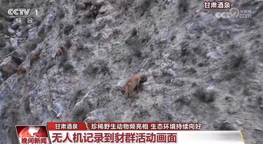 这两天,在甘肃省酒泉市肃北县,11只毛色棕红、尾巴呈黑褐色的豺群在山间活动时被记者用无人机记录了下来。只见它们在高山上“闲庭信步”,时不时还会好奇地打量无人机。据了解,祁连山是世界上豺分布的重要栖息地之一,豺群的频频亮相对于维持当地生态系统结构完整性具有重要作用。
