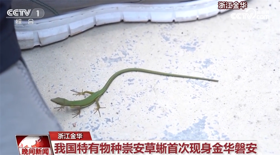 这两天,一只通体绿色的蜥蜴现身浙江金华磐安县,经鉴定系中国特有珍稀濒危物种崇安草蜥。与其他蜥蜴不同的是,这种蜥蜴外观奇特,通体翠绿,只有肚子呈白色,经常与环境融为一体,很难被外界发现。