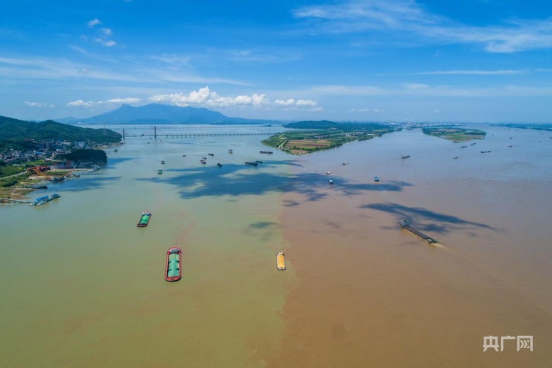 湖口县石钟山景区“江湖两色”的奇观(央广网发 李学华 摄)
