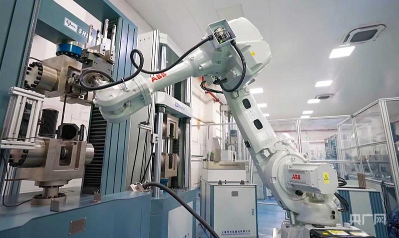全自动智能拉伸弯曲检测系统正在运作(央广网发 欧青 摄)