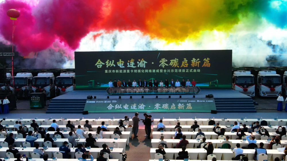 图为重庆市新能源重卡规模化网络建成暨合川示范项目启动仪式现场。