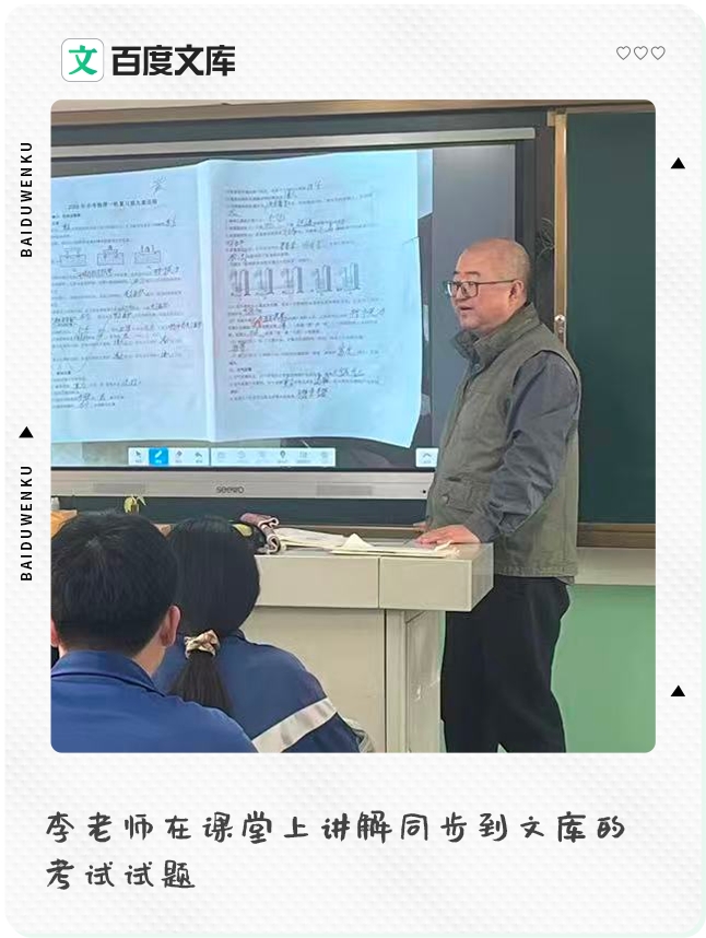 他常常推荐青年教师和学生入驻百度文库,在他看来,“做文库是系统整理知识、提升能力的最佳途径”,很多老师都是从做文库开始,学会了出题、排版、组卷。